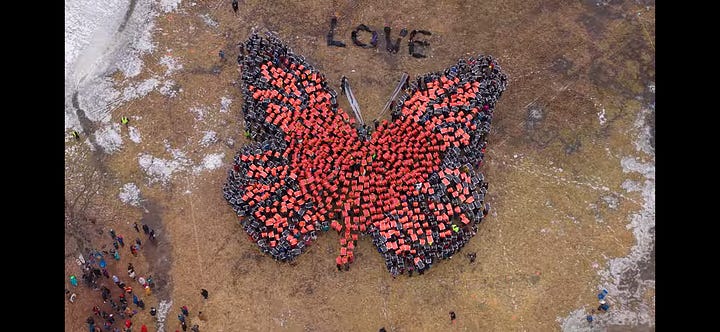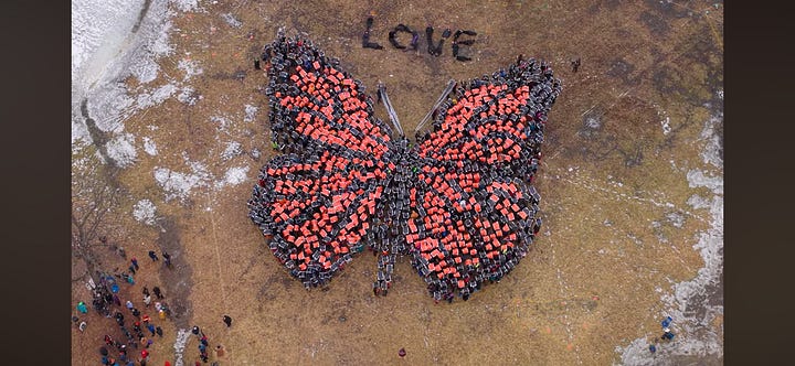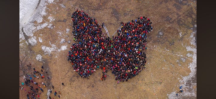 Of late the protesting has become more decentralized. The initial goal was to get as many people out at once with our unified message, now it has morphed into as many causes as there are consequences from the ICE incursion. Each person has to prioritize the cause and method which is closest to their heart, because on a given Saturday, there could be many actions happening at the same time. Some demand Minnesota corporations to speak out and protect our neighbors, others seek our local government to lengthen the eviction timeline to keep people in their homes, there are the art projects (like the butterfly above), singing actions that seek to reclaim a space from the ICE abductions that happened there, vigils and memorials to those who have been lost, and fundraisers to help pay rents after weeks of being unable to work.
