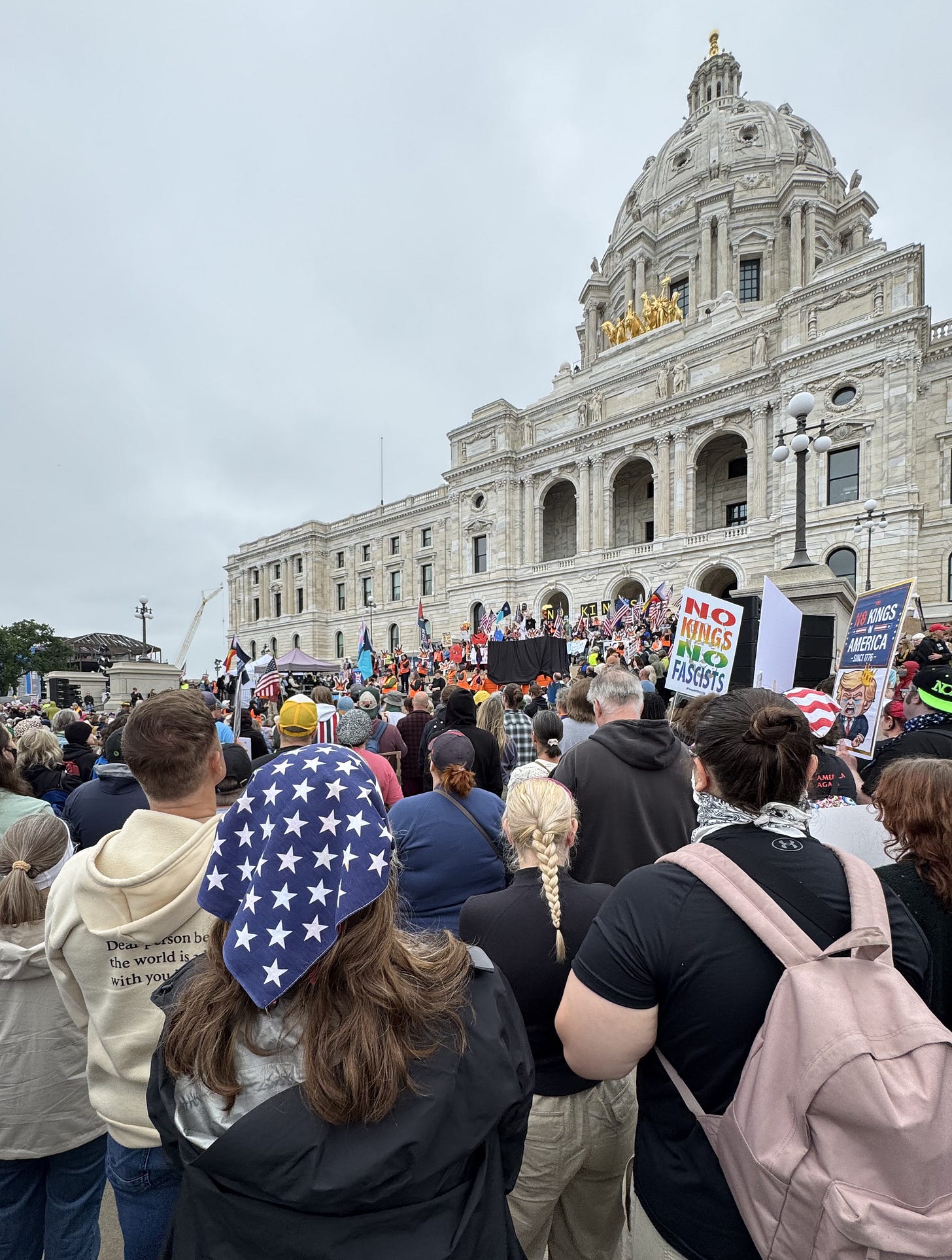 This past “No Kings” day, March 28, 2026, I found myself in the car traveling to St. Paul, with Josh and my neighbor, Paula. A bit of deja vu rose as we drove across town together, once again choosing the side streets over the freeway, as we had done this before on the first “No Kings” event last June 14th, 2025, nearly ten months ago now.